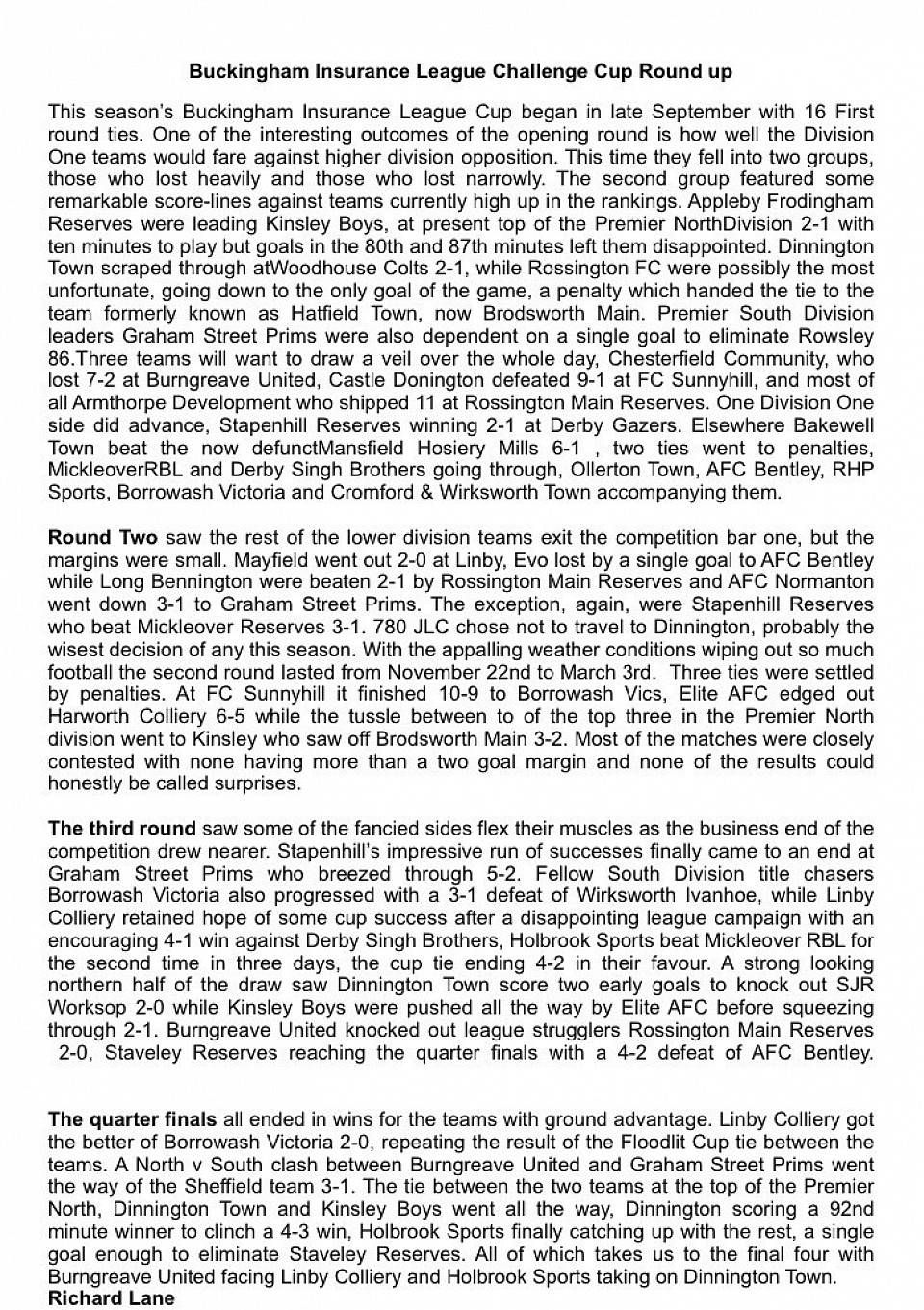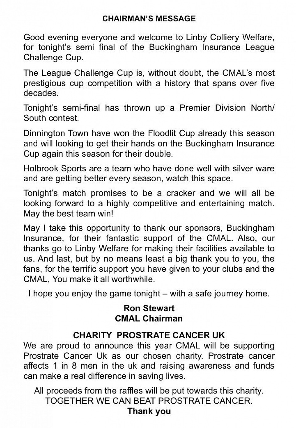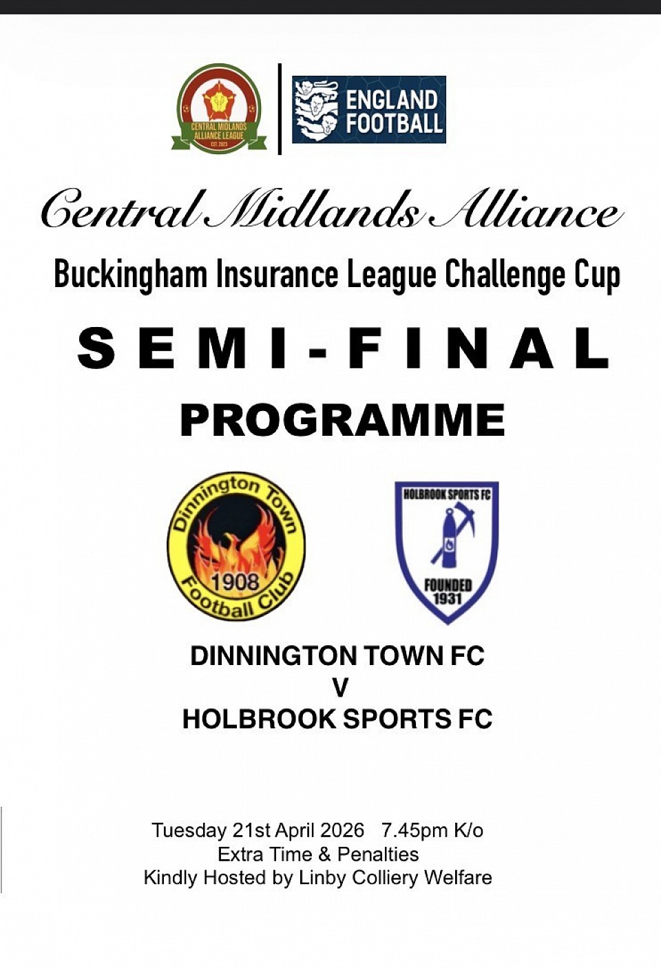 CHALLENGE LEAGUE CUP SEMI-FINAL PROGRAMME.